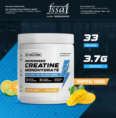 Product details of Wellcore – Pure Micronised Creatine Monohydrate (122g, 33 Servings) | Lab Tested | Tropical Tango | Supports Athletic Performance and Power